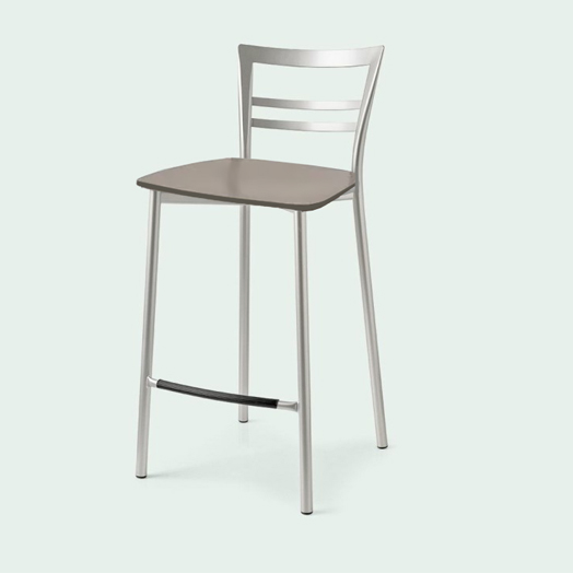 A lightweight stool that is also versatile thanks to the possibility of combining various materials, finishes and colors for the seat with the galvanized metal frame. The mid-height backrest ensures comfortable support for the back.