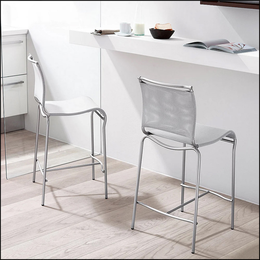 The use of avant-garde materials, such as tubular steel and synthetic PVC/Polyester NET mesh, has allowed us to craft a sturdy, lightweight and handy stool. The careful design given to its lines makes it comfortable and ergonomic; as a matter of fact, the seat offers great posture for daily use.